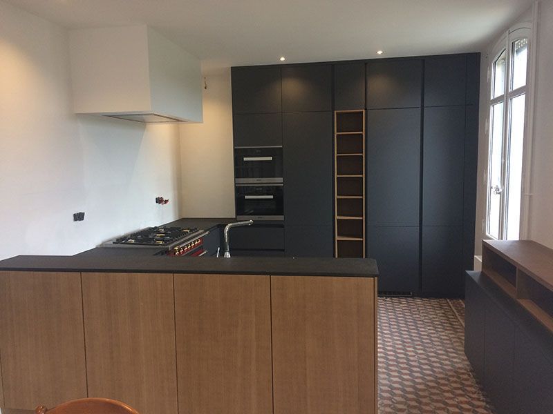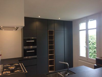 Un sol authentique vient nous rappeler toute l’histoire et le vécu de cette belle maison de maître dans laquelle cette cuisine aux lignes contemporaines vient prendre place.